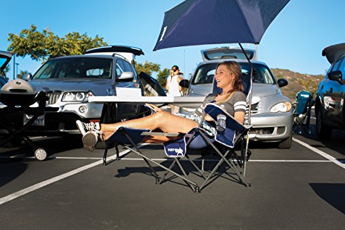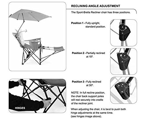 ULTRA COMFORTABLE. The easy to adjust recliner hinges have 3 options, meaning you can sit up, lay back or nap, as you sit and watch the waves. Put your feet up with the detachable footrest and relax with the Sport-Brella Recliner Chair.
