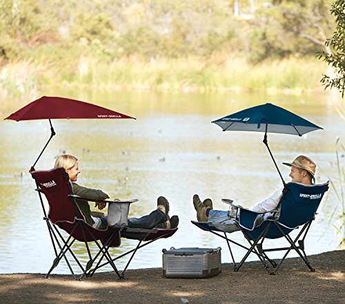 The Sport-Brella Recliner Chair covers all your bases, bringing you ultimate comfort as you watch every game and cheer on your favorite players as they hustle down the field. With a 3-swivel umbrella you will stay protected against the sun with UPF 50+ and a metallic underside. The canopy can easily attach to either side, so you’ll stay in the shade no matter where you’re sitting. With three additional adjustable hinges for reclining, and a detachable footrest you can sit back, relax, and enjoy the show. The insulated drink pouch and built-in bottle opener means you can crack open a cold one for you and your friends at the park or at the beach. There is a zippered storage pouch to keep your personal belongings protected, as you nap in the shade or the sun. Always be prepared with the Sport-Brella Recliner Chair when you take it to your family BBQ or pack it up for your favorite camping adventure in the easy to carry bag. The Sport-Brella Recliner Chair is built for comfort and made to last. The lightweight stainless steel frame can support up to 250 lbs. meaning you’ll get all the support you need. So, put your feet up, lay back, and enjoy the view with the Sport-Brella Recliner Chair.