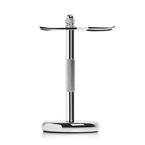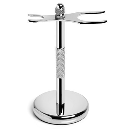 Razor and Shaving Brush Stand by Slate Shave - Chrome Silver Holder - Perfect for Wet Shaving Enthusiasts