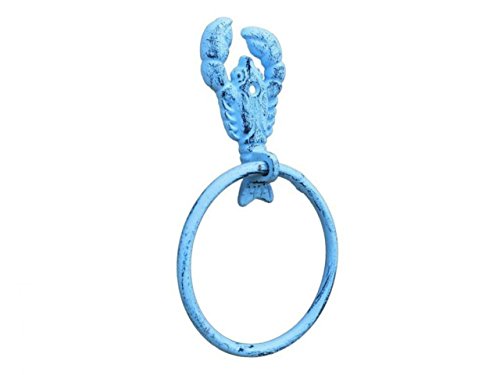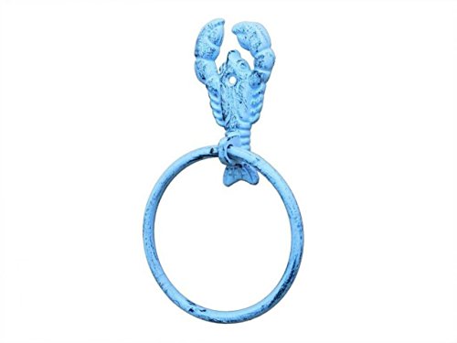 Hampton Nautical K-9007-dark-blue Dark Blue Whitewashed Cast Iron Lobster Towel Holder 9" - Lobster Decoration - Beach Bathroom Decor