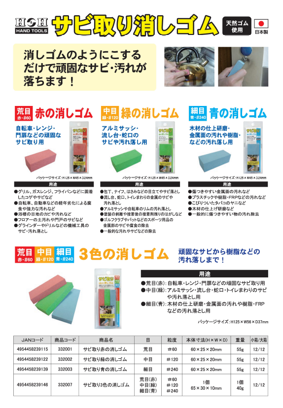 【商品名】(業務用50セット)H&H サビ取り 緑の消しゴム 【中目/#120相当】 天然ゴム使用 日本製 〔業務用/DIY用品/日曜大工〕