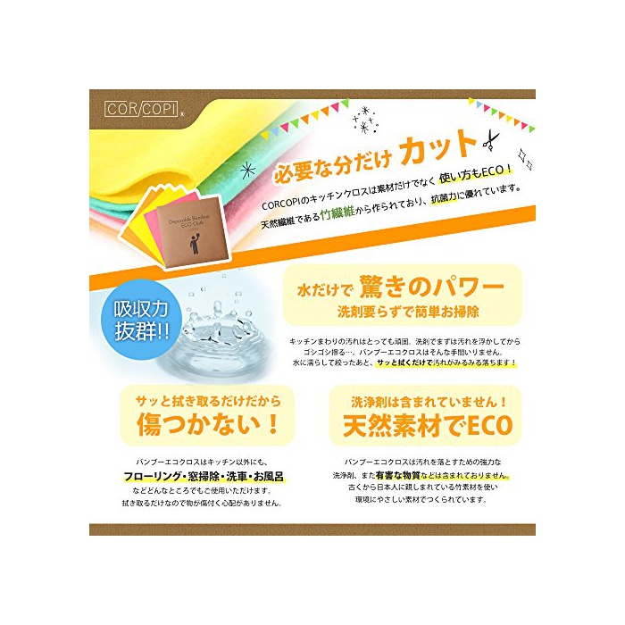 CORCOPI(콜《고피》) CORCOPI 대나무 에코 크로스 걸레 일회용 5 매들어감 세트 대청소 연말 약30일간 이상의 내구성 5매입에 반년 이상 사용 가능