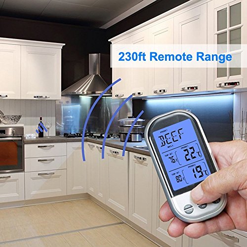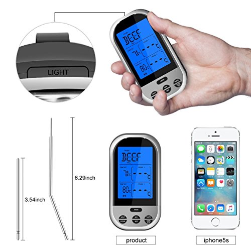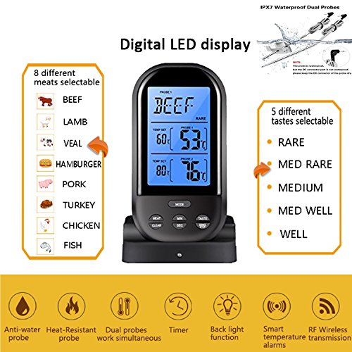 Meccion Wireless Remote Digital Meat Thermometer Dual Waterproof Probe For Cooking, Grill, Oven, Meat, Turkey, Steak With Large Display & Radio Receiver Range Up 230 Feet