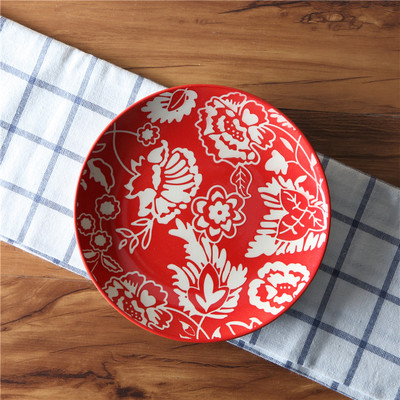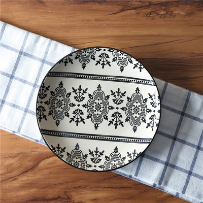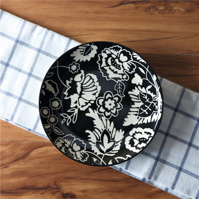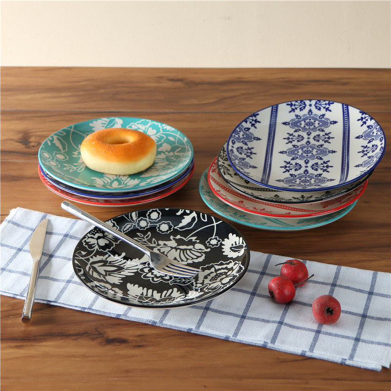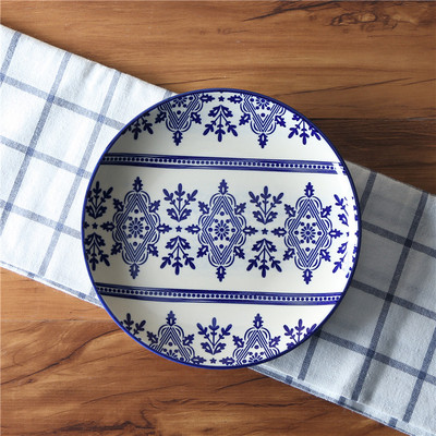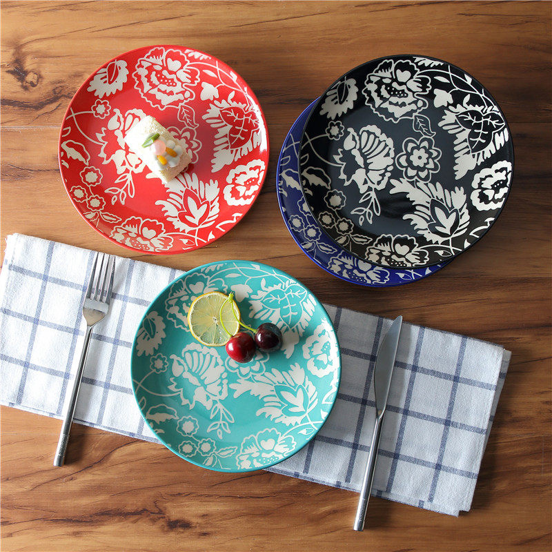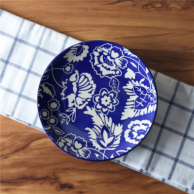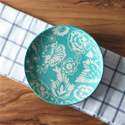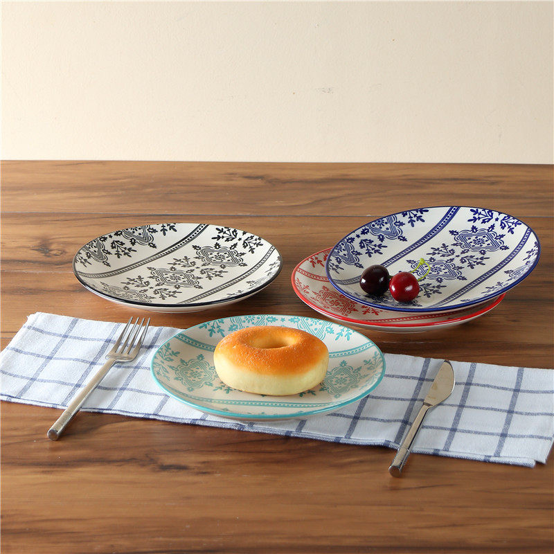 美式乡村田园风釉下彩手绘圆盘早餐盘平盘菜盘实用牛扒盘点心盘