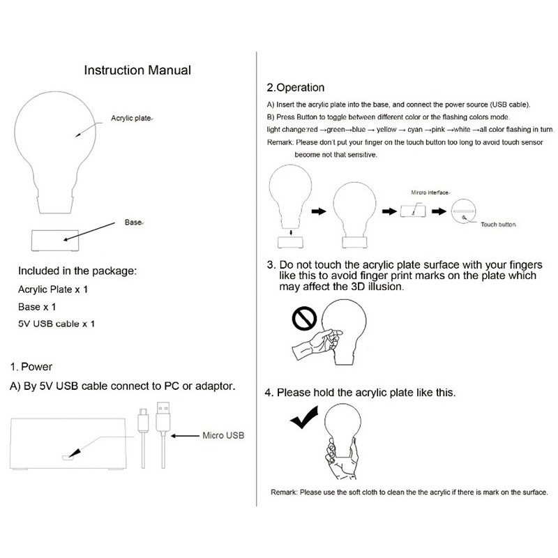 2. USB charger is not included, the night light powered by 5V power source, such as USB phone charger or USB port of computer and etc.