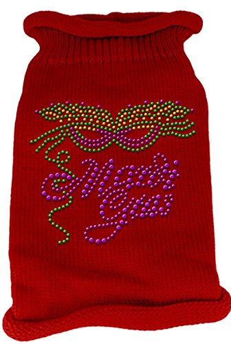 Mirage Pet Products Mardi Gras Rhinestud Knit Pet Sweater, Small, Red