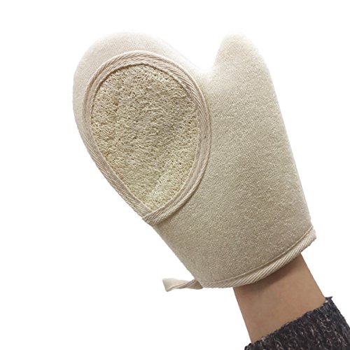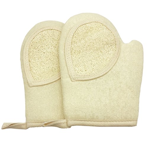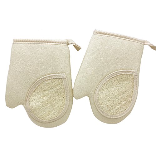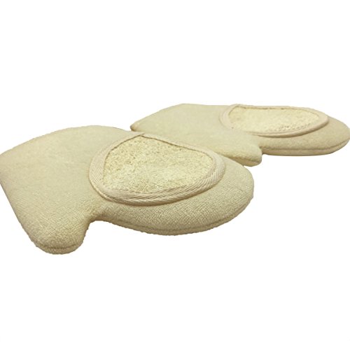 MAYMII 2 Pack 100% Natural Exfoliating Deep Cleansing Loofah Pads Glove flexible Luffa Fibres Sponge Scrubber Shower Face Clean
