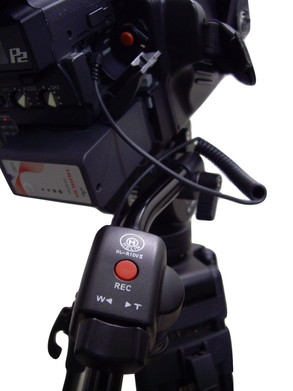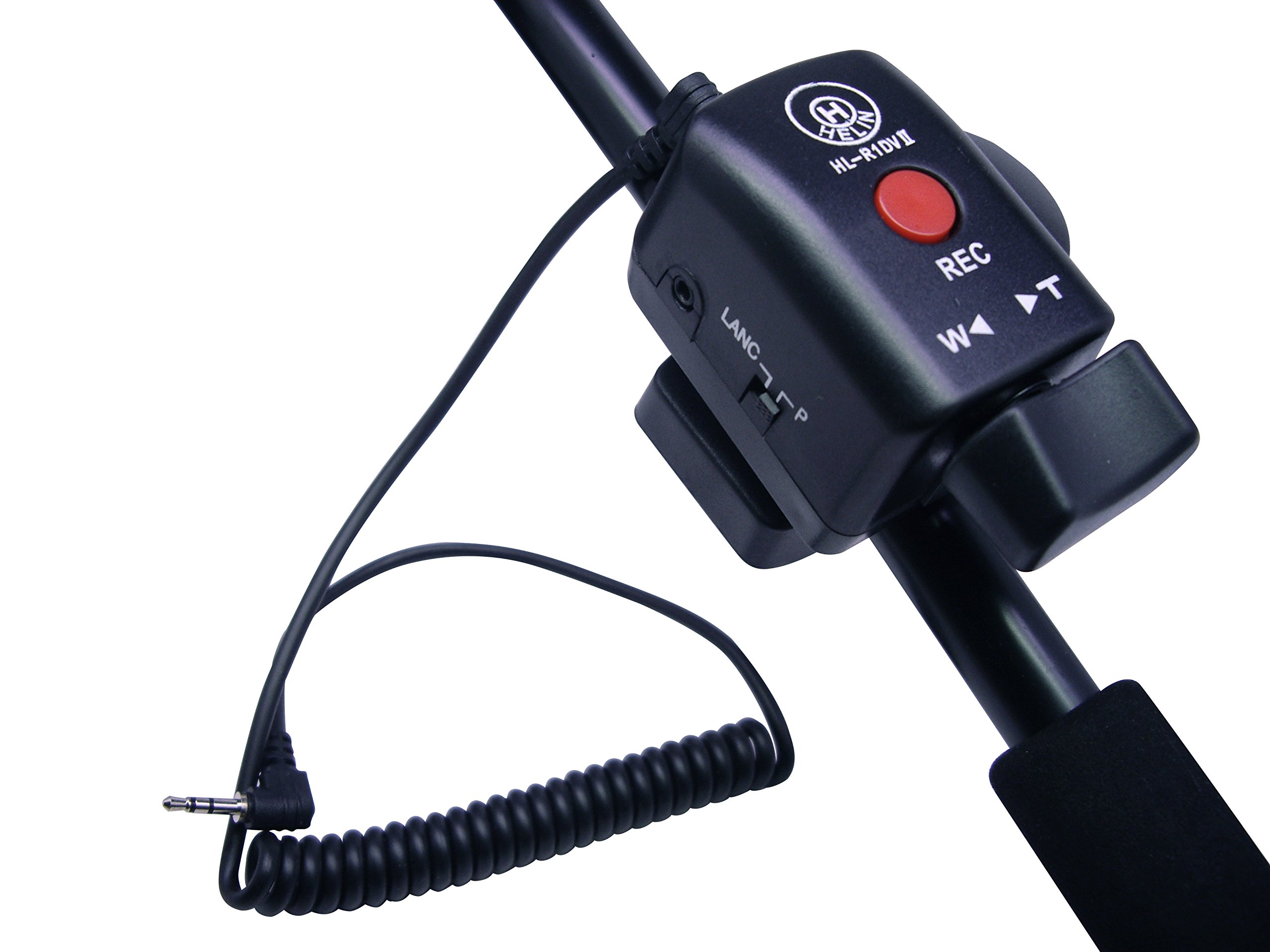Helin Zoom controller HL - R1 DV II is a zoom controller that is attached to a tripod pan handle.