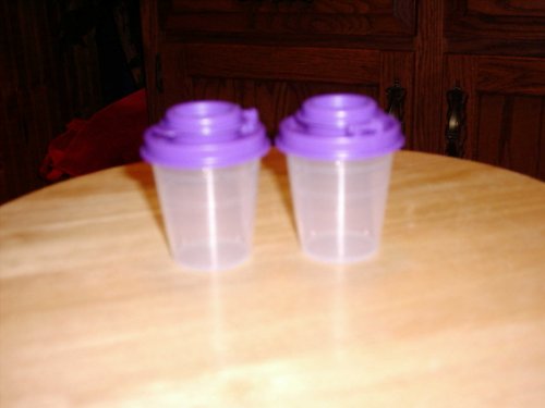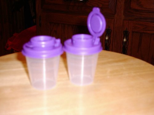 Tupperware 2 Oz Miniature Salt & Pepper Shakers/clear Base with Purple Seal