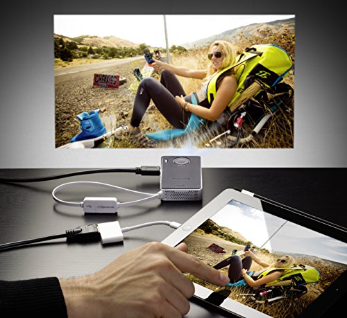 -. Feature : Portable projector plays 1080p videos up to 60" in size / Connectivity through HDMI, USB, SD card and plays files directly from your PC / Built-in media player and 4GB internal memory for storing videos / Premium speaker with 3.5mm headphone and Bluetooth input / Pocket Size and up to 2 hours battery to project everywhere you go