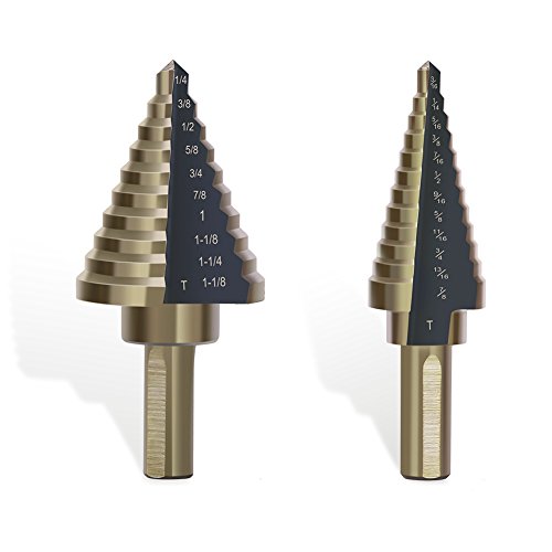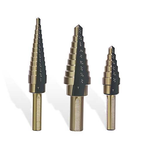 Shank : Five sizes; tri-flatted shank prevents slip in drill chuck(the board must be smaller in thickness than the height of step drill bits)