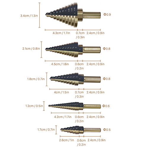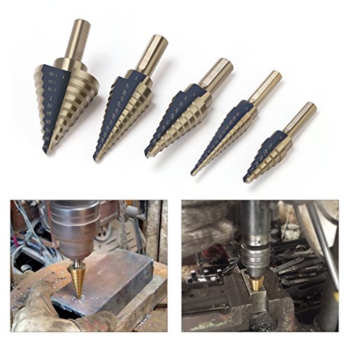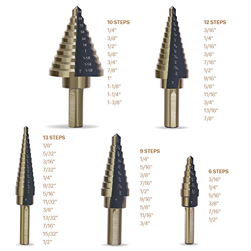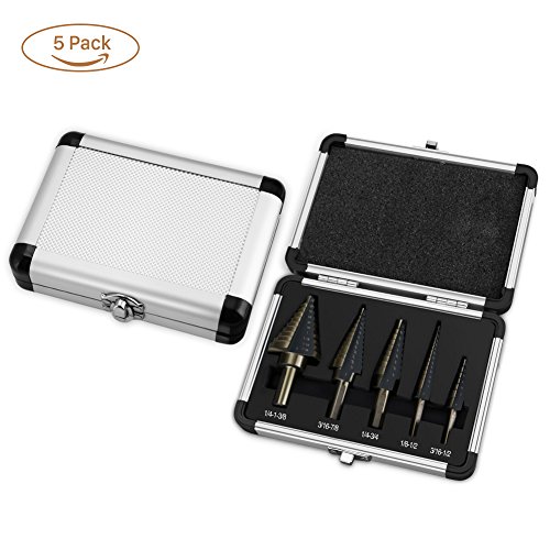 YOHOOLYO Step Drill Bit Set 5Pcs HSS Cobalt Drill Bits 50 Sizes Multiple Hole Drill Bit with Aluminum Case