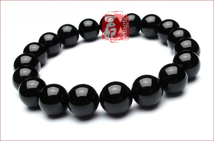 天然水晶手链天然黑玛瑙佛珠手串男女款 送挂件