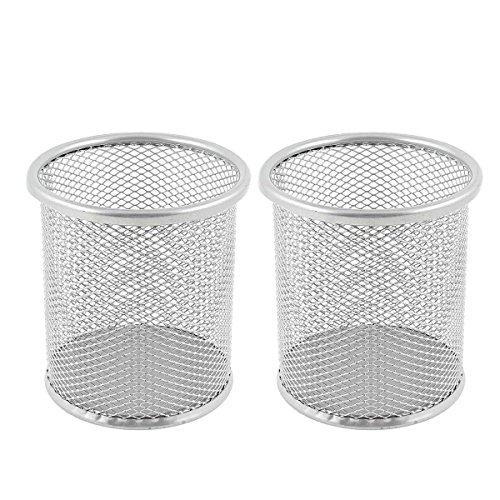 Saim 2 pcs Black Round Metal Mesh Style Pen Pencil Cup Desk Organizer Holder for Home Office