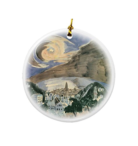 Rikki Knight Walter Gramatte Art Moon Over Barcelona Design Round Porcelain Two-Sided Christmas Ornaments