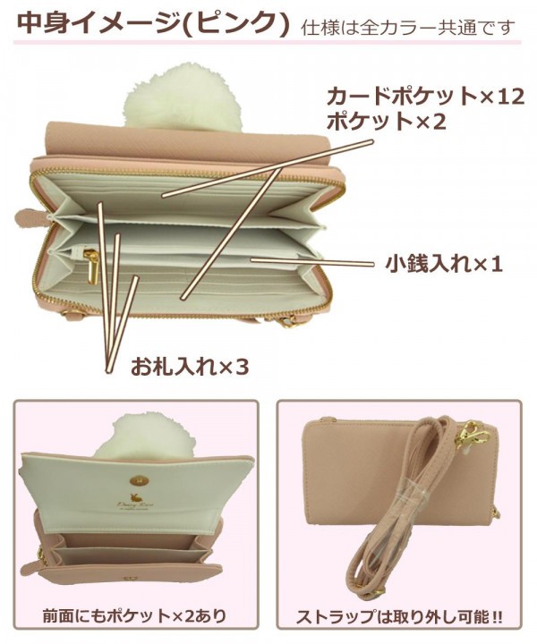 | 仕様 | カードポケット×12 ポケット×2 小銭入れ×1 お札入れ×3 ショルダーストラップ取り外し可 |