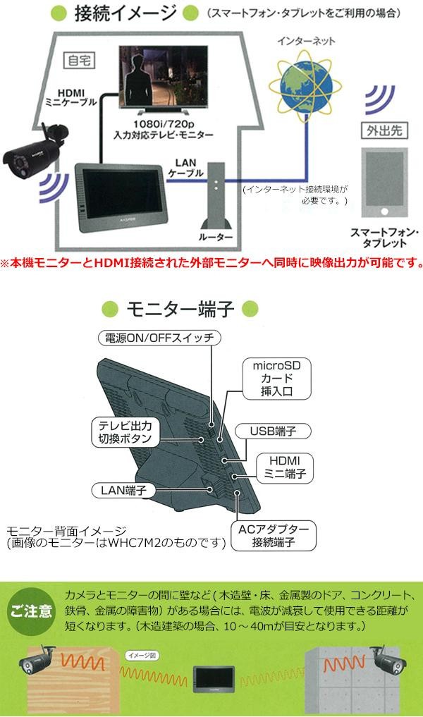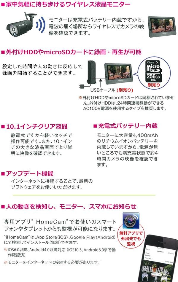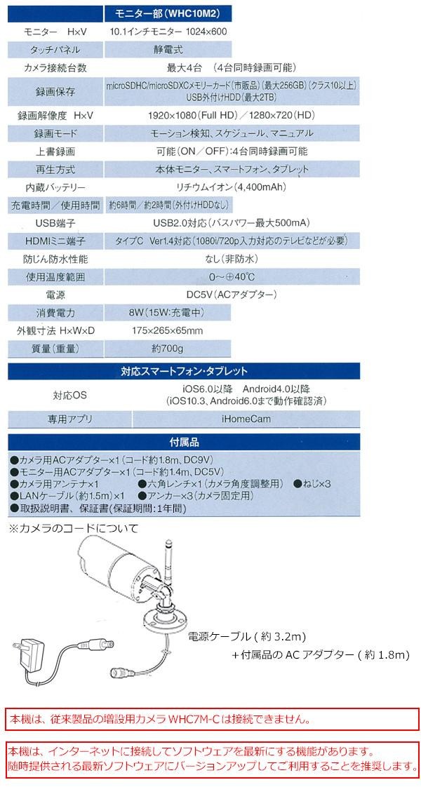 | 重量 | モニター:約700g、約カメラ:460g 個装重量:1980g |