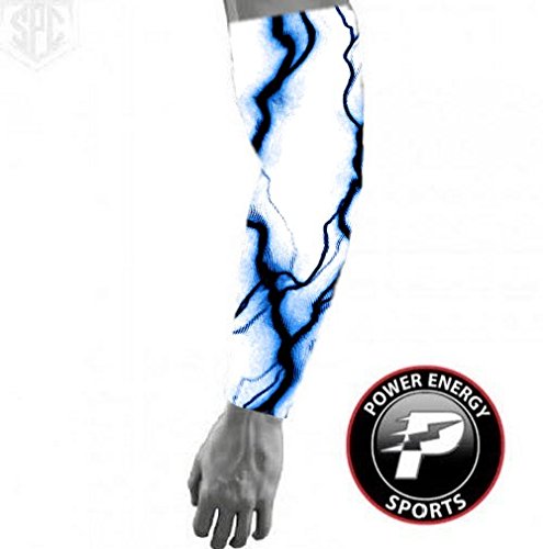 -. Brand : Power Energy Sports -. Department : mens -. Feature : Compression fit and stretch fabric for muscle support and freedom of movement. / Moisture wicking performance fabric keeps you dry and comfortable. / 83% sublimated Polyester/17% Spandex. / Provides protection from UV rays. / Click thumbnail image for sizing information -. Label : Power Energy Sports -. Manufacturer : Power Energy Sports -. ProductGroup : Sports -. ProductTypeName : OUTDOOR_RECREATION_PRODUCT -. Publisher : Power Energy Sports -. Studio : Power Energy Sports -. Title : Baseball Sports Compression Arm Sleeve - Blue Lightning / White Sleeve