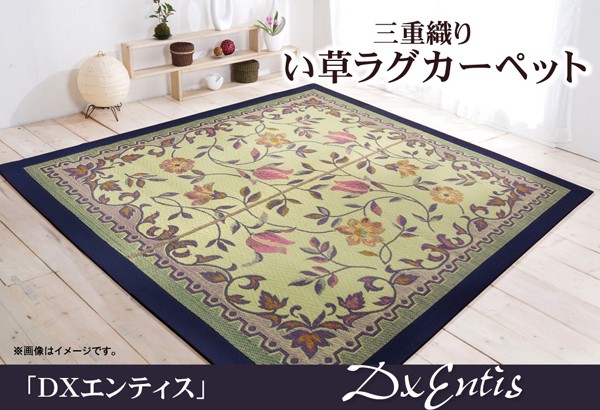 【商品名】三重織り い草カーペット 『DXエンティス』 ブルー 江戸間6畳 約261×352cm 裏:不織布 抗菌防臭効果