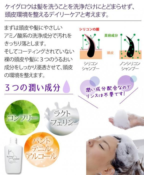| 使えば実感!よみがえれ健康髪。毛髪のお悩みにケイグロウ。 |