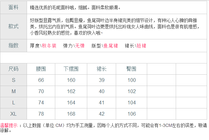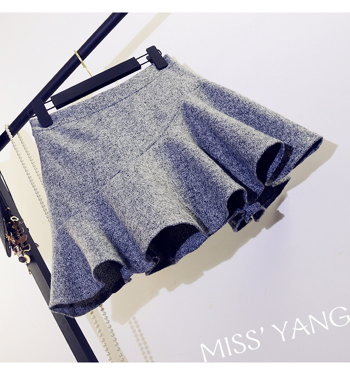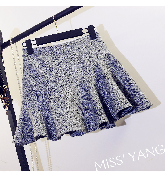 秋季新款韩版气质斜身荷叶边下摆鱼尾裙高腰裙半身裙秋冬毛呢短裙
