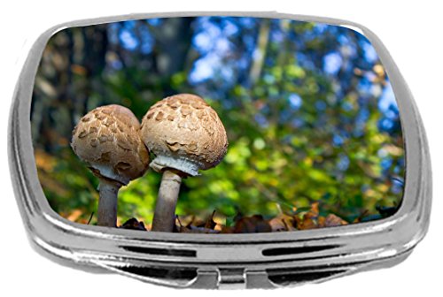 Rikki Knight Compact Mirror, Pair of Parasol Mushrooms with Blue Green Background, 3 Ounce