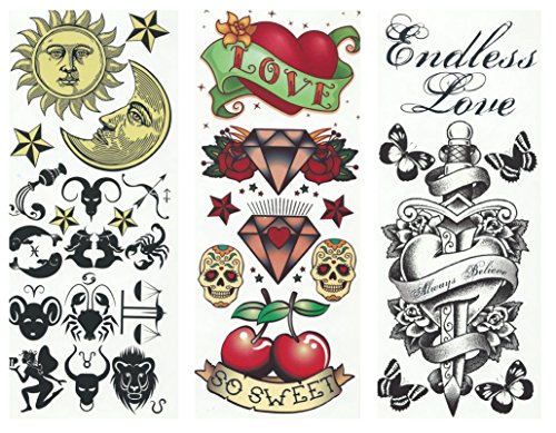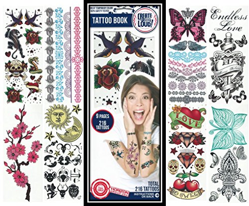 -. Feature : OVER 200+ NEW STUNNING DESIGNS - 9 Page High Resolution Full Color Book With Vibrant and Trending Tattoo Designs / PREMIUM QUALITY - Temporary tattoos will last several days and keep its fresh color look. They are waterproof! / 100% SAFE TESTED - These stylish fake jewelry tattoos are NON-TOXIC and fun for all ages; including kids & adults. Can be worn anywhere on your body. / QUICK & EASY TO APPLY - Up your daily look or costume in less than 1 minute with this hot new trend. These stylish full color tattoos are easily removable by rubbing baby oil. Wear it on your arm, leg, back, shoulder, or face. / HAPPY CUSTOMER GUARANTEE - We're confident you'll love the new tattoo book, so your order is backed by our money back for any reason, guaranteed.