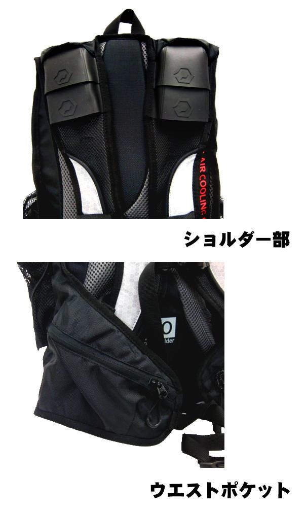 | 肩パッドのエアインテークから積極的に空気を取り入れ、背中面から排出する事で背中の熱を排出する構造になっています。反射素材にグラフィックプリントを施し、デザインと機能を両立。夜間でも目立ちます。 |