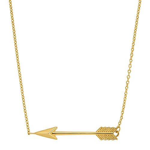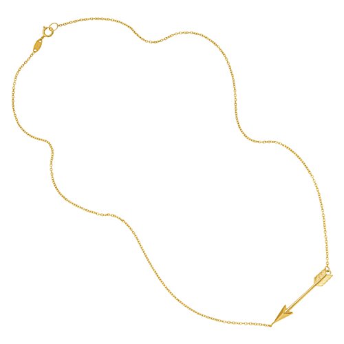 Stay on-trend with this modern arrow necklace! Crafted in 14K gold, this petite arrow is held horizontally along its dainty chain. Feature piece measures 3/16 by 1 1/4 inches with a total length of 17 inches.Feature
