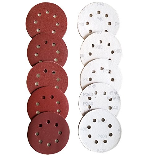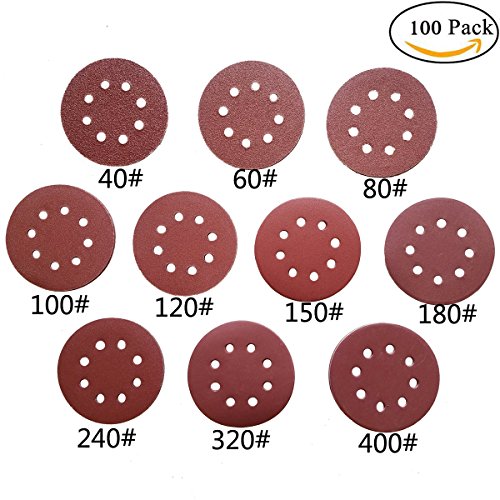 5-Inch 8-Hole Dustless Hook-and-Loop Sanding Disc Sander Paper, Pack of 100 (10 Each of 40 60 80 100 120 150 180 240 320 and 400 Grits)