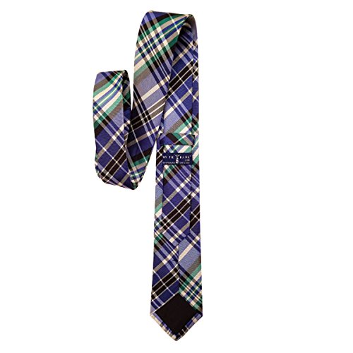 (My Tie Bank)/Accessories/Ties/DIRECT FROM USA/Webster Black Blue Plaid Check 100% Silk 2.5 Inch Skinny Tie