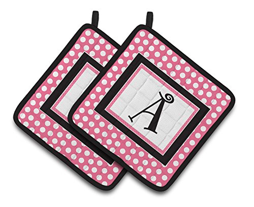 Caroline's Treasures Letter A Monogram - Pink black Polka Dots Pair of Pot Holders CJ1001-APTHD, 7.5HX7.5W, Multicolor