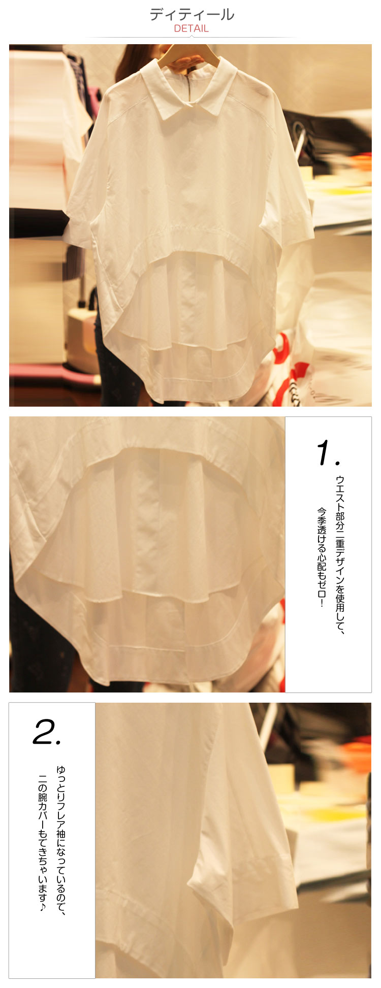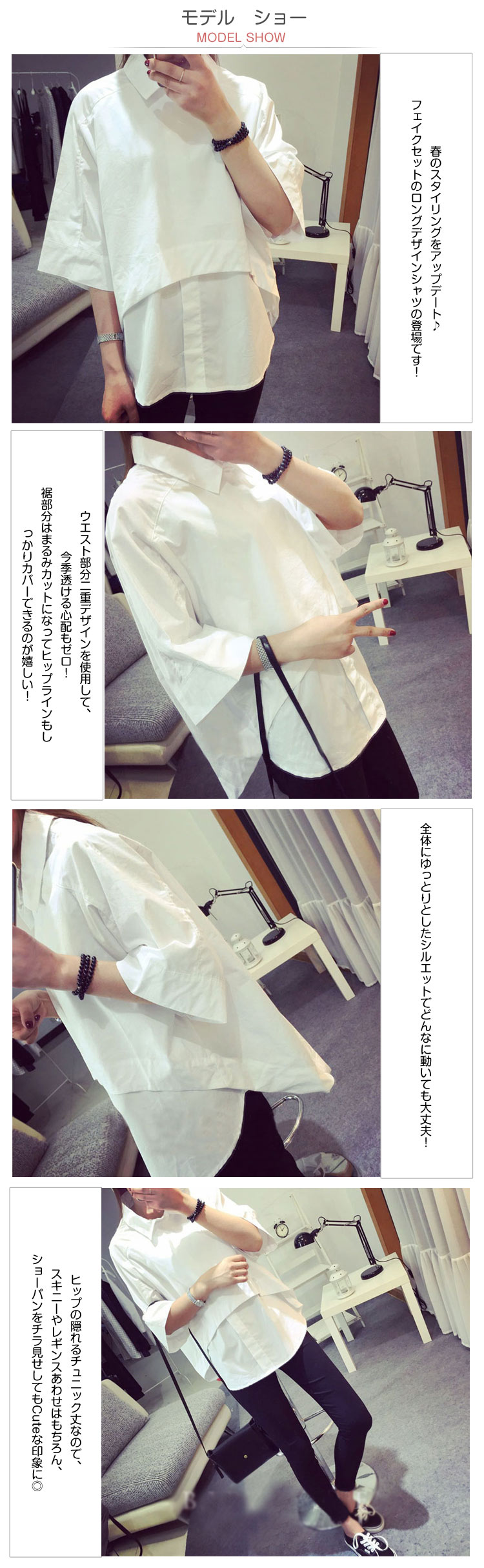 | 春のスタイリングをアップデート?フェイクセットのロングデザインシャツの登場です!ウエスト部分二重デザインを使用して、今季透ける心配もゼロ!裾部分はまるみカットになってヒップラインもしっかりカバーできるのが嬉しい!全体にゆっとりとしたシルエットでどんなに動いても大丈夫!ヒップの隠れるチュニック丈なので、スキニーやレギンスあわせはもちろん、ショーパンをチラ見せしてもCuteな印象に◎ | |