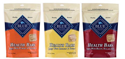 -. Title : Blue Buffalo Blue Health Bars Natural Baked Dog Biscuits 3 Flavor Variety Bundle: (1) Blue Health Bars Baked With Pumpkin & Cinnamon, (1) Blue Health Bars Baked With Bananas & Yogurt, and (1) Blue Health Bars Baked With Bacon, Egg & Cheese, 16 Oz. Ea. (3 B