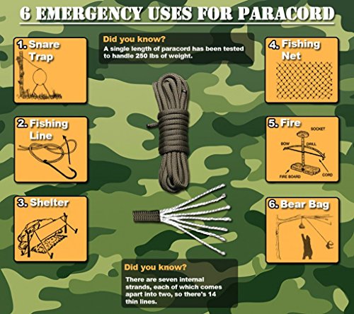 ✔ QUALITY TESTED & EASY MAINTENANCE: The 250lbs paracord has been tested to a breaking point/tensile strength of 250lbs or 110kg. You can use it for any situation where a high strength rope or cord is required. Wash it in the washer or just rinse it in the river. It’s practically maintenance-free.