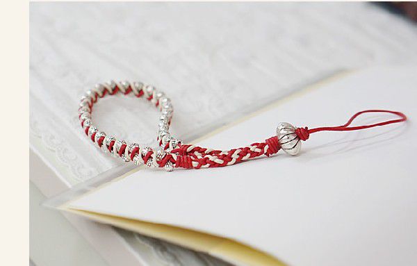 ***赤いコーティングコードにチベットボールを編み込んだ可愛い携帯ストラップ*** ・サイズ:全長約18cm、装飾部分約11.5cm
