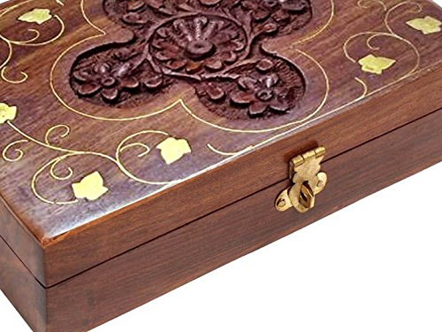 Xmas or Thanks Giving Day Present Wooden jewelry box, Flower Inlay with Carving Storage Box, Brown Color Jewelry Box, Keepsake Box, Jewelry Organizer Box - 7 X 5 Inch.