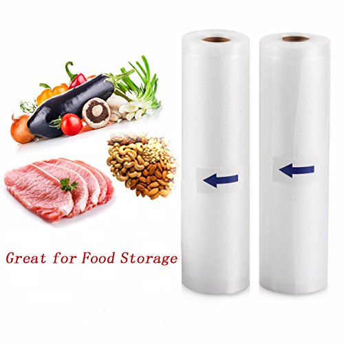Immuson Vacuum Sealer Bags 2 Rolls 11x16 4 mil BPA Free Embossed Grade Bag Rolls for Food Vac Storage & Heat Seal, Microwave & Freezer Safe, Compatible to Sous Vide Food Saver