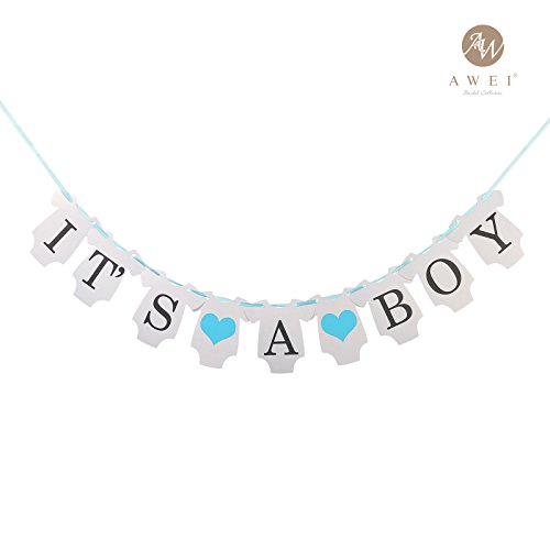 -. Binding : Toy -. Brand : AWEI -. Feature : Card Size: 4.7" * 4.7". String Length: 106" / Material: high quality paper cards. Ribbon and cards come separately. / Perfect for both outdoor and indoor. Easily displayed using the eyelets at either end. / Lightweight, portable and environmental. Can be reused. / Be a lovely decoration for parties,birthday, baby shower. -. Label : AWEI -. Manufacturer : AWEI -. ProductGroup : Toy -. ProductTypeName : TOYS_AND_GAMES -. Publisher : AWEI -. Studio : AWEI -. Title : AWEI Baby Boy Cardboard Bunting Banner/ Party Decoration