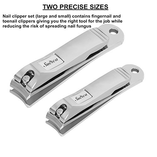Why choose the Sucica brand nail clippers? - Heavy duty stainless blade clippers cut your nail and cuticle skin, which gives you a professional look. - Smooth surface clippers prevent the risk of the infection and ingrown nails. - A file on the back keeps your nails smooth and prevents cracking. -Remarkable design, which makes you enjoy easy and quick nail care. This nail clipper is easy to hold and can also be used by people with arthritis or weak/limited motor coordination. - Nail cutter set works flawlessly for the thick toenails and fingernails for the men, women, elders and people with disabilities. -Budget-friendly nail clippers. 0