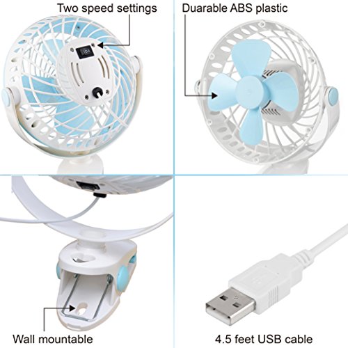 Opolar 3-in-1 Desk Clip and Wall Mountable Mini USB Fan with 2 Speeds