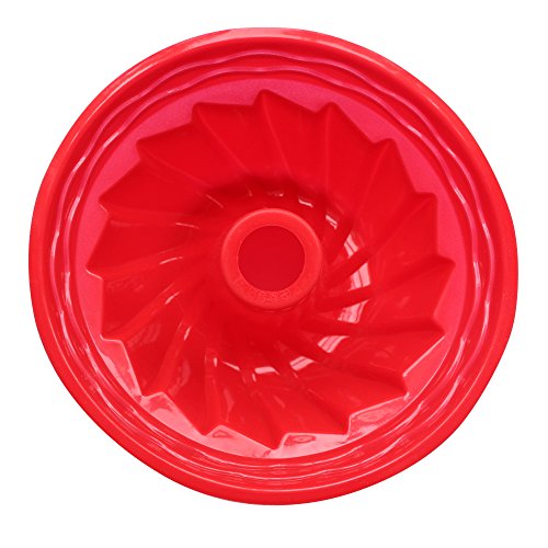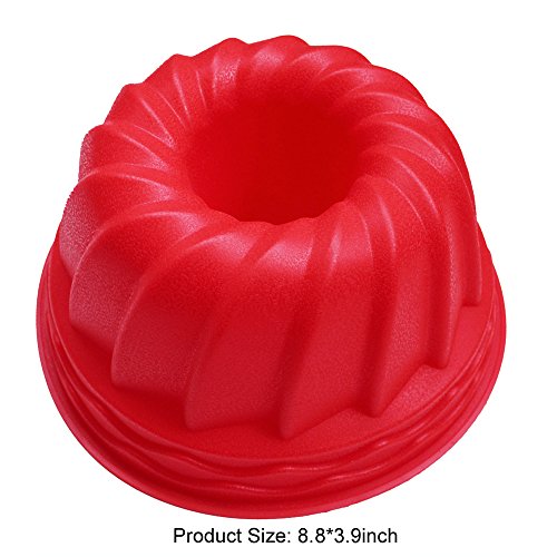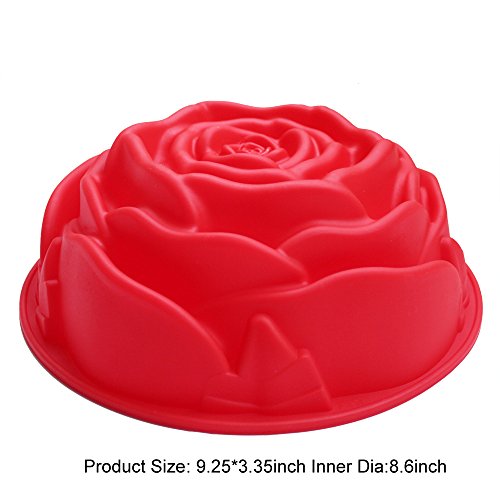 BAKER DEPOT Silicone Bakeware Big Cake Mold With 4 Differet Designs Rose Round Shape Flower Crown Design Pastry Mold Cake Decorating Tools, Set of 4 Red Color