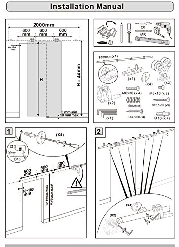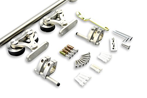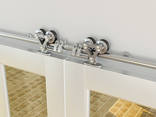 DIYHD 10FT Top Mount Brushed Stainless Steel Bi-Parting Double Sliding Barn Door Track To Hang 2 Doors