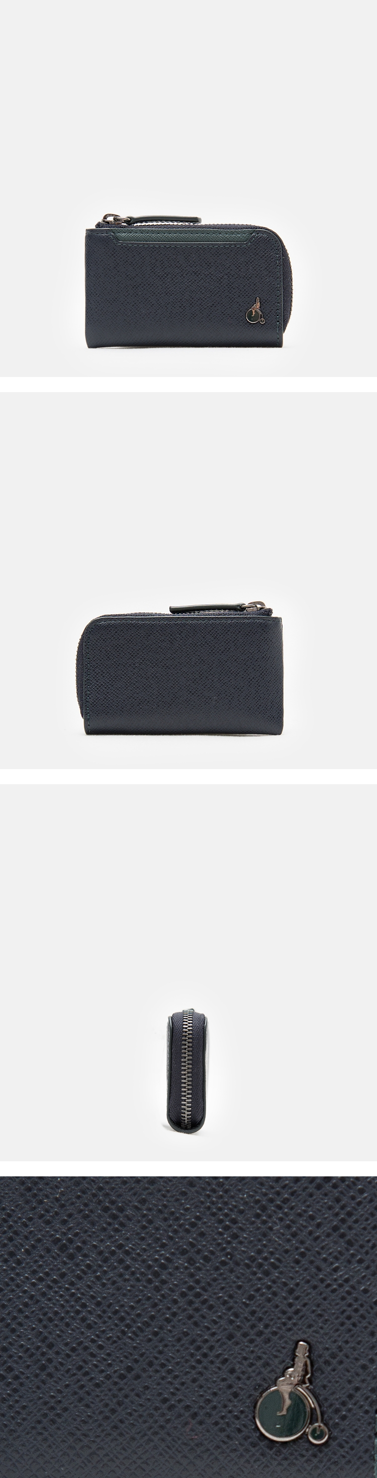 외피 컬러와 장식, 스티치, 내피의 컬러 콤비를 이루는 디자인의 스마트키 파우치입니다.