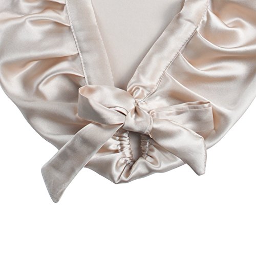 Silk Sleep Caps for Women Girls, EASILK 100% Natural Night Cap Adjustable Bonnet Head Cover for Hair Beauty, Beige