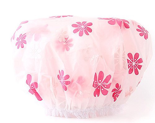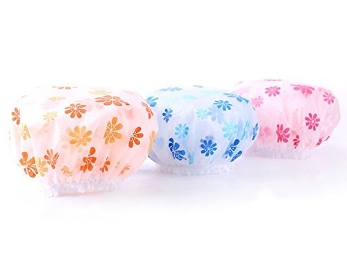 Fashion Design Beautiful High Quality Reusable Shower cap - Set of 3 (Blue/Hotpink/Orange(Sunflower pattern))