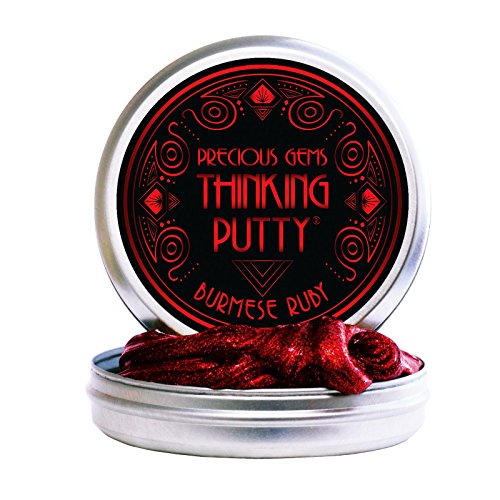 -. Binding : Toy -. Brand : Crazy Aaron's -. EAN : 0884540191325 -. Feature : Burmese rubies are known to be some of the finest in the world. Based on the deep red color of this coveted gem, our Burmese Ruby Thinking Putty is gorgeous and powerful. / In your hands it will come aglow with faceted sparkles that communicate passion, love and energy / Made in the USA. / Each metal tin is hand packed with 1.6oz's of Thinking Putty! / Hours of fun -. IsAdultProduct : 0 -. ItemPartNumber : BRO11 -. Label : Crazy Aaron's -. Manufacturer : Crazy Aaron's -. ProductGroup : Toy -. ProductTypeName : TOYS_AND_GAMES -. Publisher : Crazy Aaron's -. Studio : Crazy Aaron's -. Title : BURMESE RUBY Crazy Aaron's PRECIOUS GEMS Thinking Putty 1.6 Oz Desk Toy Glitter RED NEW For Ages 3+ -. UPC : 884540191325