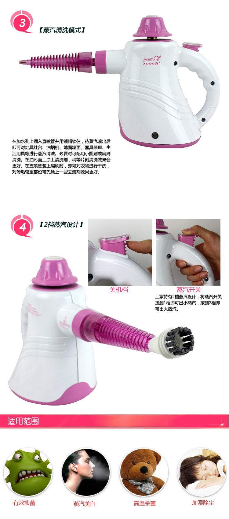 Product Type: SJ-119 Color: white paint Use: Handheld maximum loading quantity: 350ml Rated voltage: 220V thermal fuse switches: 169 ℃ Steam pressure: 3.5bor temperature control switch: 135 ℃ Steam temperature: 130 ℃ interior volume: 450ml Steam pressure: 3.5bor temperature control switch: 135 ℃ |