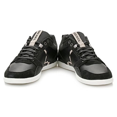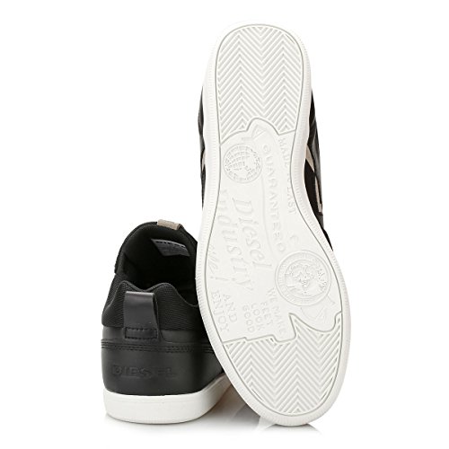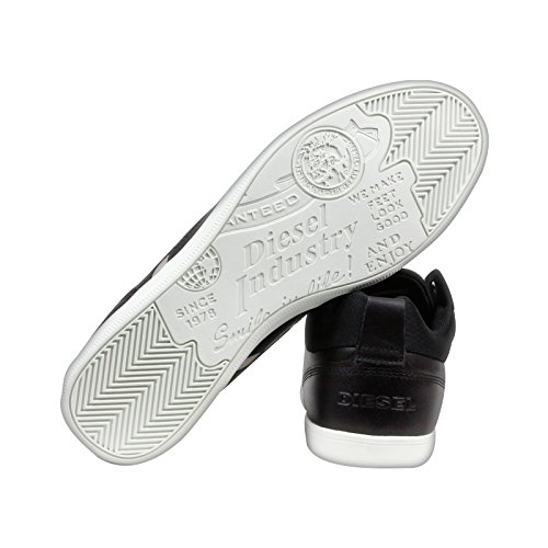 Product DescriptionDiesel Happy Hours S-Tage low top athleisure style sneaker with interesting upper details in leather and suede, V Diesel logo, and customized outsole.0