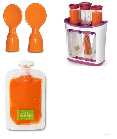 -. Binding : Baby Product -. Brand : Infantino -. Feature : Soft rubber press allows for easy grip / Holds up to 4 ounce of your homemade puree / Non skid base and dishwasher safe / Create on the go baby food in 4 easy steps / From the fresh squeezed feeding line -. IsAdultProduct : 0 -. Label : Infantino -. Manufacturer : Infantino -. ProductGroup : Baby Product -. ProductTypeName : BABY_PRODUCT -. Publisher : Infantino -. Studio : Infantino -. Title : Infantino, Squeeze Station, Create Your Own Baby Food Pouches